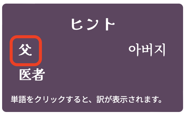 問題文の下の「ヒント」から、わからない単語の日本語訳をクリックすると、韓国語が表示されます。